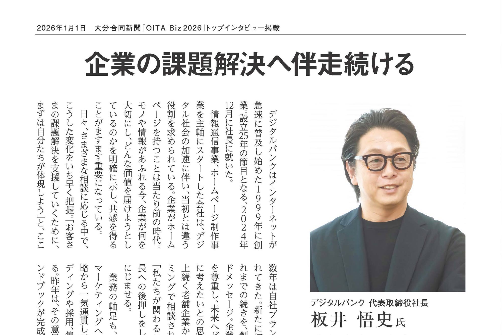 (2026.01.14) INFORMATION大分合同新聞「OITA Biz 2026」トップインタビュー掲載のお知らせ